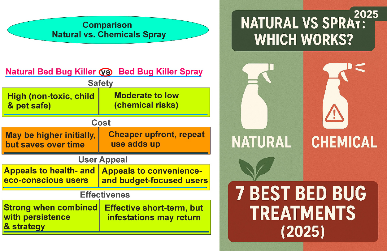 Discover the difference between “natural bed bug killers and chemical sprays”.